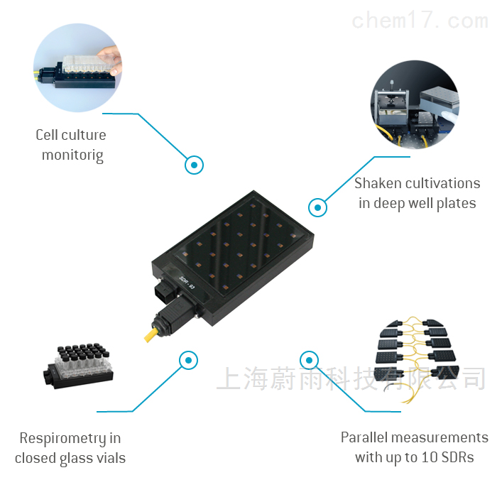 SDR多孔板监测仪是一款24通道的氧气、pH测量仪,在每个透明孔板的底部装配了传感器点,通过光纤传感原理,得以实现实时且非侵入式的监测功能,同时该系统适用于震荡过程中的测量,因此也可用于细胞及细菌培养。